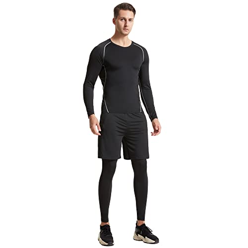 5Pcs Men’s Fitness Workout Clothing Running Compression Pants Short/Long Sleeve Shirt Top Jacket Set Suit