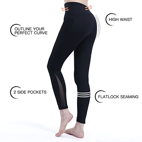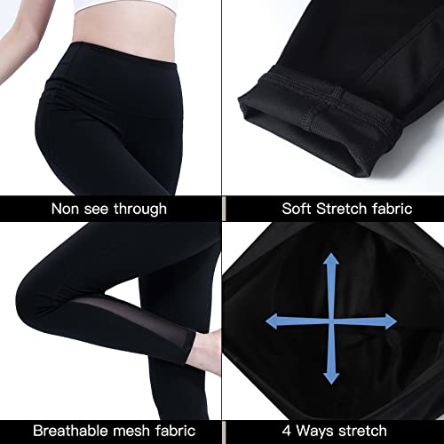 dowskwx Gym Leggings for Women, Mesh Leggings with Pockets Women High Waist Yoga Pants for Sports Workout Running Fitness