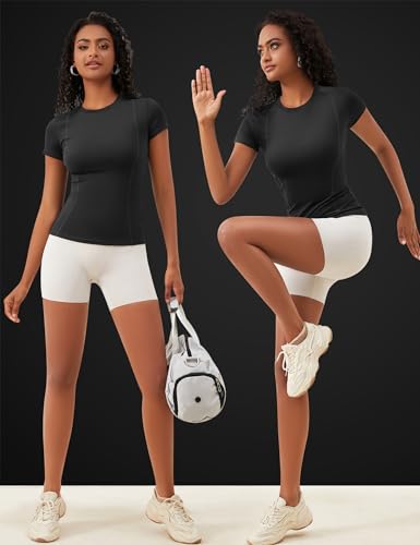 IECCP Women’s Seamless Workout Shirts Short Sleeve Dry Fit Stretchy Athletic Sport Gym Fitness Tee Exercise Yoga Tops