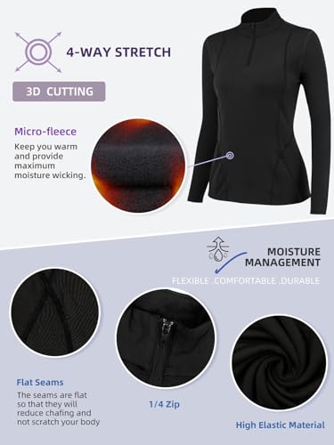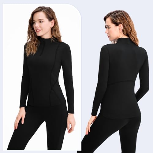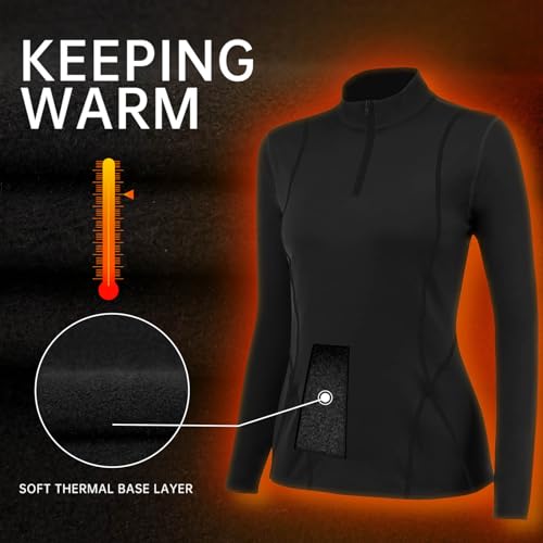 TERODACO Half Zip Thermal Base Layer Women Warm Wicking Ski Base Layers with Micro Fleece Long Sleeves Ladies Thermal Tops for Running Hiking Cycling Soft Quick Dry Breathable