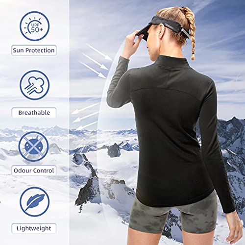 TERODACO UPF 50+ Womens Thermal Tops Half Zip Long Sleeve Running Base Layer for Women Hiking Ski Underwear,Warm Wicking Quick Dry Lightweight