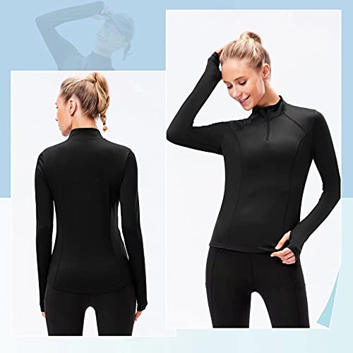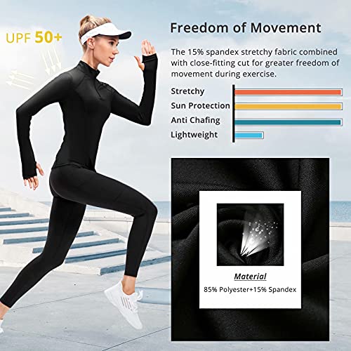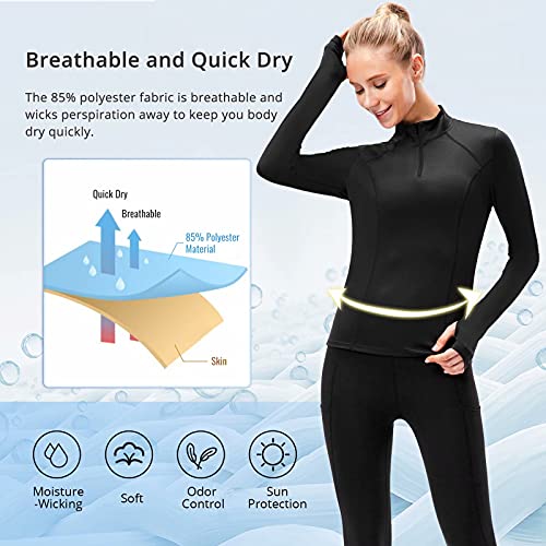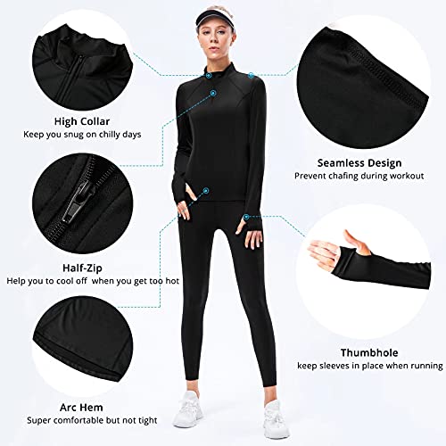 TERODACO Womens Long Sleeve Running Top Half Zip UPF 50+ Gym Hiking Workout Base Layer Women Sports Tops with Thumb Holes Breathable Quick Dry Lightweight