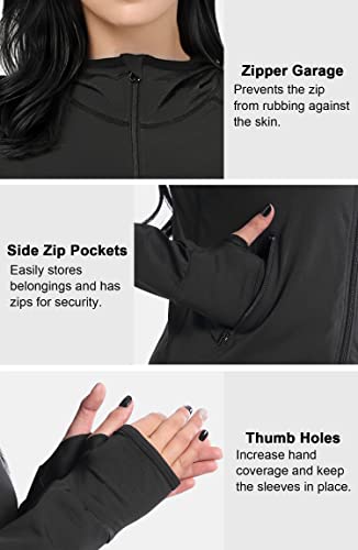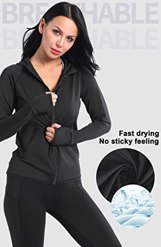 AMZSPORT Women’s Running Jacket Long Sleeve Gym Sports Hoodie with Zip Side Pocket