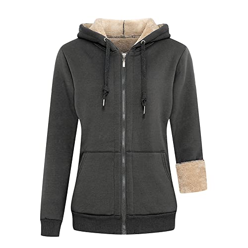 AOTORR Ladies Plain Hoodie Winter Warm Fleece Lined Zip Up Jacket Coat for Women