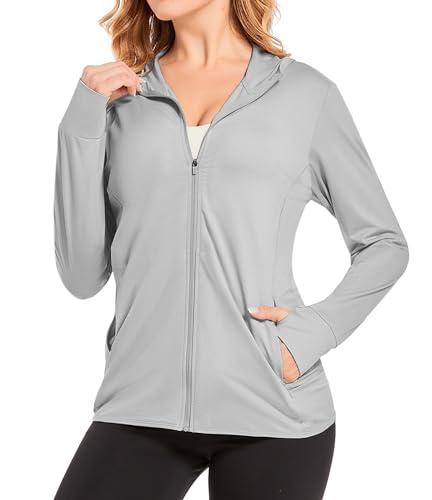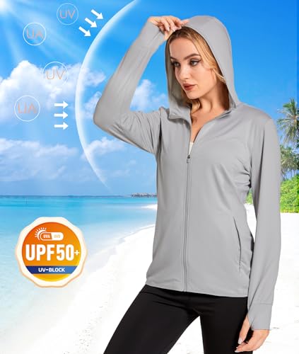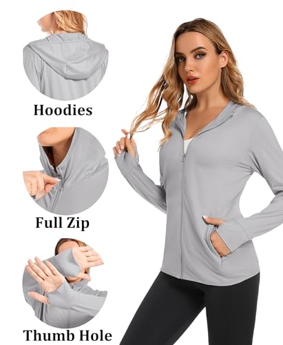 EKLENTSON Women’s UPF 50+ Long Sleeve Sun Protection Shirts Full Zip Hoodie Jacket Sun Shirt Thumb Hole Zip Pockets