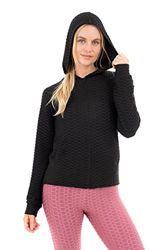 M17 Womens Ladies Solid Full Zip Textured Honeycomb Stretchy Sportswear Gym Running Yoga Jacket