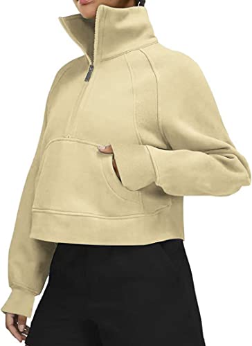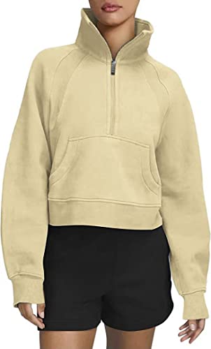 SMENG Womens Half Zip Sweatshirts Long Sleeve Pullover Quarter Zip Drop Shoulder Trendy Ladies Tops