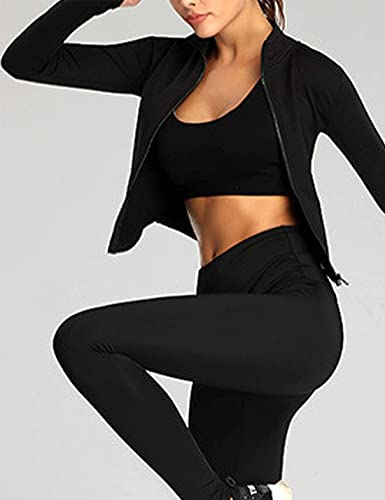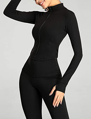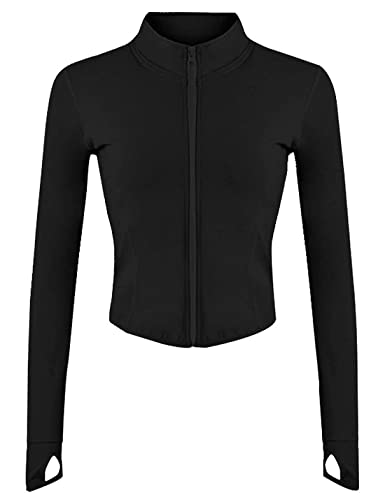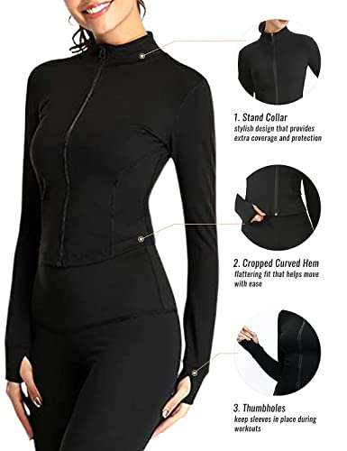Sukany Women’s Lightweight Full Zip Running Track Jacket Workout Slim Fit Stretchy Athletic Yoga Sportwear with Thumb Holes