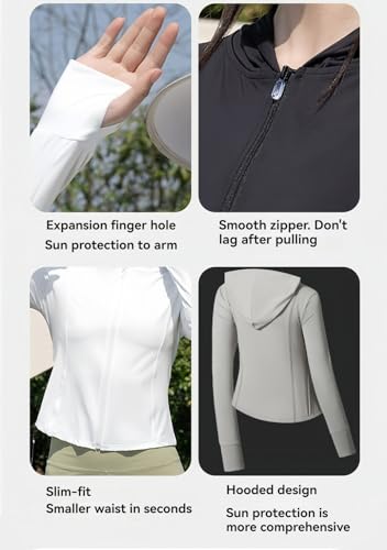 Women’s Athletic Lightweight Full Zip Workout Jacket with Thumb Holes Long Sleeve Sun Shirt Ultraviolet-proof UPF50+