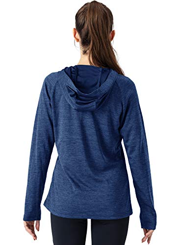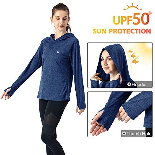 donhobo Women’s Long Sleeve Sports Running Hoodie Tops Shirts with Thumb Hole,UPF 50+ Sun Protect Breathable Quick-Dry Fitness T-Shirt Tops for Workout Gym Training Yoga Pilates
