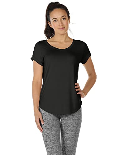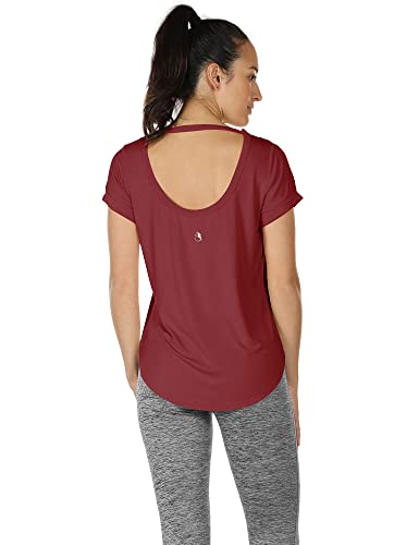 icyzone Yoga T-Shirts for Women Open Back – Workout Tops Short Sleeves Shirts Loose fit, 2 Pack