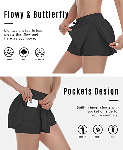 Cavotor Womens 2 in 1 Flowy Running Sports Shorts with Pocket Butterfly Athletic Workout Biker Shorts Gym Yoga Tennis Skirts