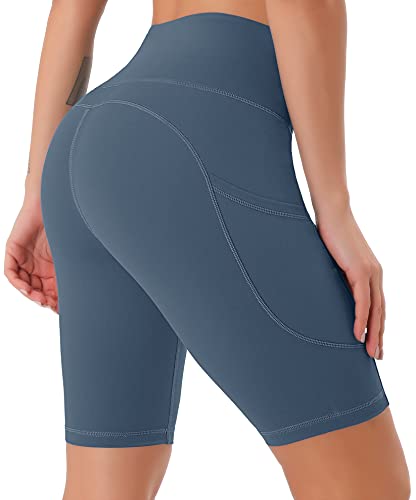 JOYSPELS Womens High Waisted Sports Shorts – Running Shorts with Sides Pockets, Non See Through Yoga Cycling Shorts for Women