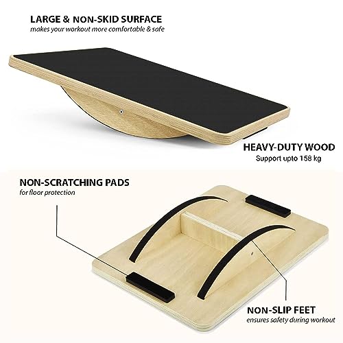 RESISTANT SURFACE & HIGH DURABILITY: Premium Balance Board Ankle with non – skid pad on the 44.4cm surface provides better grip during your workout; Rocker Board is built to last, made of high quality heavy duty wood, support up to 158kg