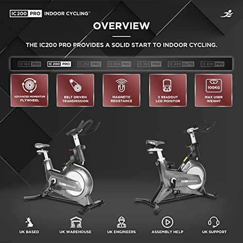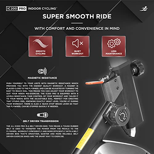 JLL IC200 PRO Indoor Cycling Exercise Bike For Home, Direct Belt Driven, Advanced Flywheel, Magnetic Resistance, 3-Piece Crank, 5 Readout Monitor, Heart Rate Sensors, Adjustable Seat
