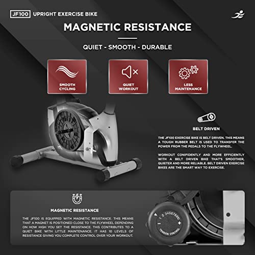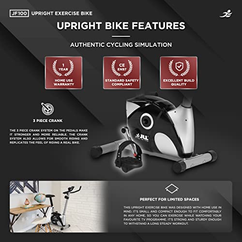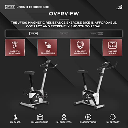JLL® JF100 Home Exercise Bike, 2024 New Adjustable Magnetic Resistance Cardio Workout, 4kg Bi-Directional Flywheel, Display with Heart-Rate Sensor, Adjustable Handlebars & Seat Height
