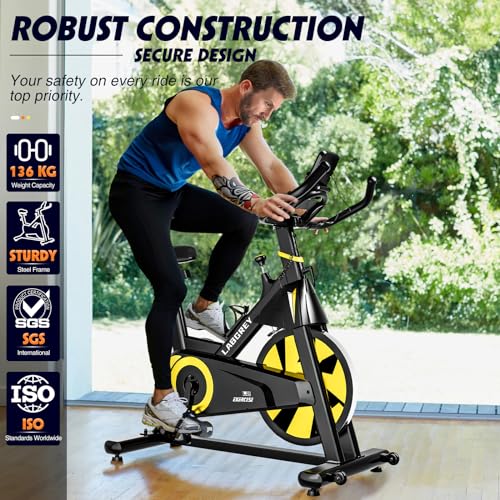 Labgrey Exercise Bike Magnetic Resistance Indoor Cycling Bike Stationary Cycle Bike with Heart Rate Sensor & Comfortable Seat Cushion, Quiet Fitness Bike for Home Cardio Workout