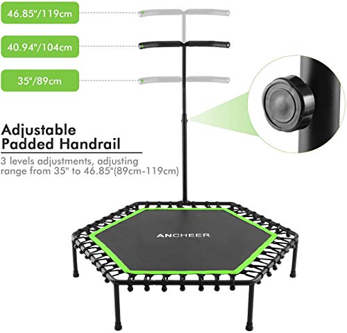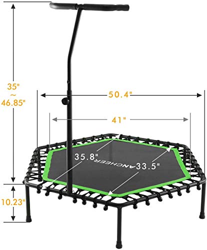 Profun Mini Trampoline Fitness Indoor/Outdoor – Adjustable Handlebar & Elastic Rope System for Children/Adults (Maximum Load: 220 lbs)
