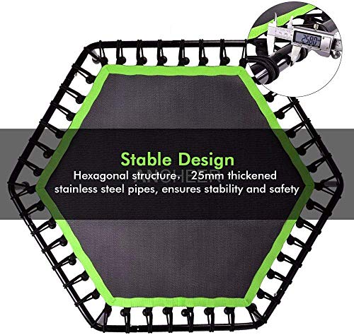 Exceptional quality: made up of 42 high elastic springs. The sewing threads in the middle are sturdy, the jump net is elastic, and the rubber strings are strong and strong, which can prolong its lifespan. Non-slip adjustment prevents slipping and noise when jumping.