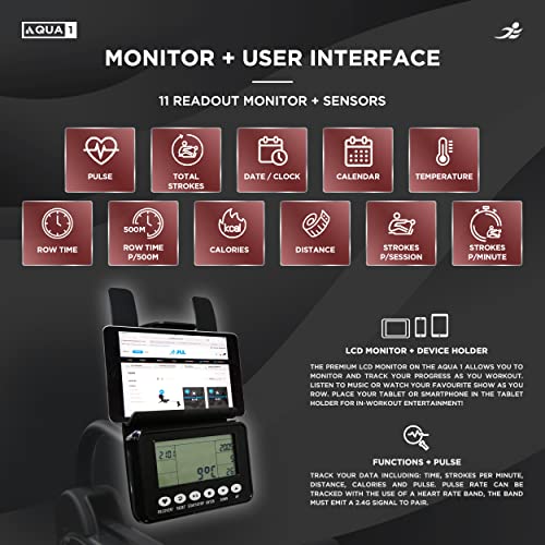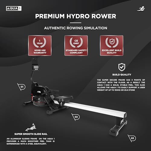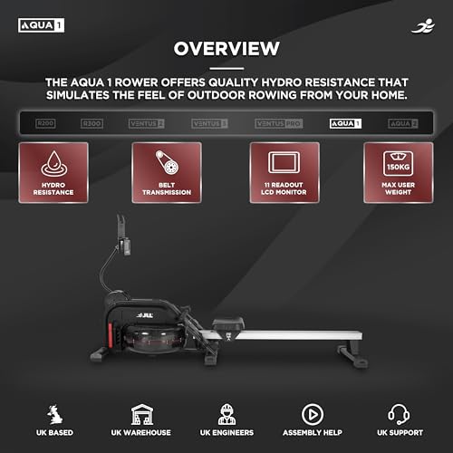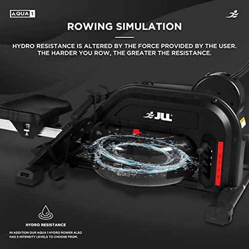 JLL Aqua 1 Rower Home Hydro Rowing Machine, Fitness, Cardio Workout with Dual Resistance, Hydro and Elastic, 11 Readout LCD Monitor, 12 Month Warranty