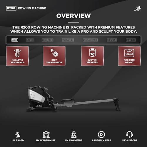 JLL® R200 Luxury Home Rowing Machine, 2024 Model Rowing Machine Fitness Cardio Workout with Adjustable Resistance, Advanced Driving Belt System, 12-Month Warranty, Black and Silver Colour
