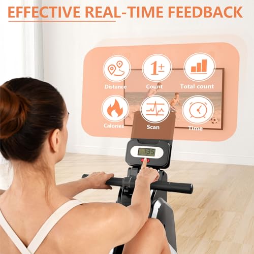 ➙ DIGITAL MONITOR— The large LCD of this rower machine displays time, count, calories and total count. The convenient scan mode displays your progress to assist you tracking all your fitness goals.