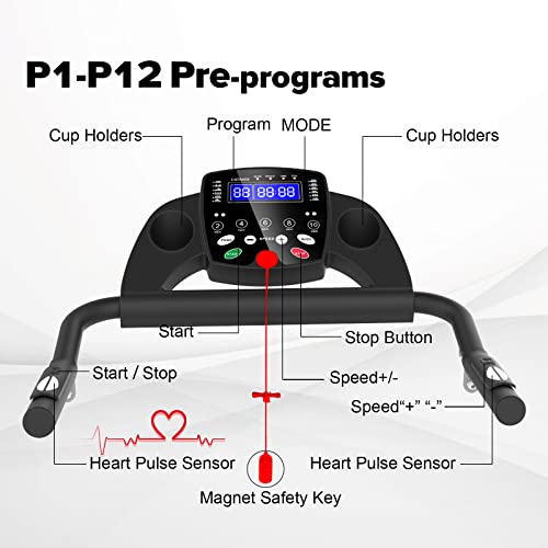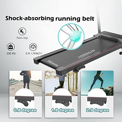 【12 Preset Programs & 3-Level Incline】 This portable treadmill has 12 preset programs and 3 adjustable incline blocks with a running surface of 360 x 1050 MM to meet your different training needs. You can freely choose the running intensity and level to challenge yourself and start your fitness journey.