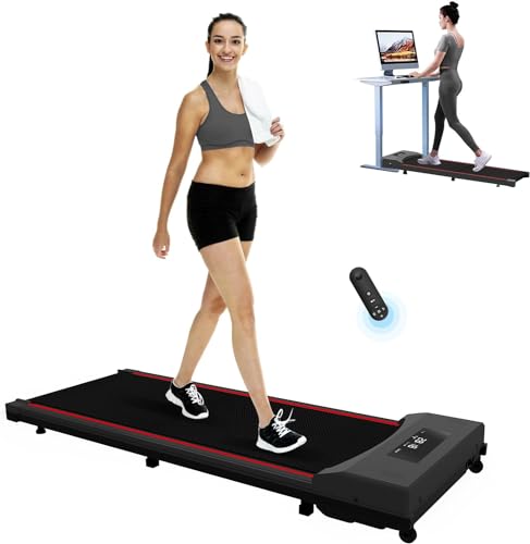 Under Desk Treadmill Walking Pad Portable Flat Slim Machine with Remote Control LCD Display for Home Office Gym Use, Installation Free