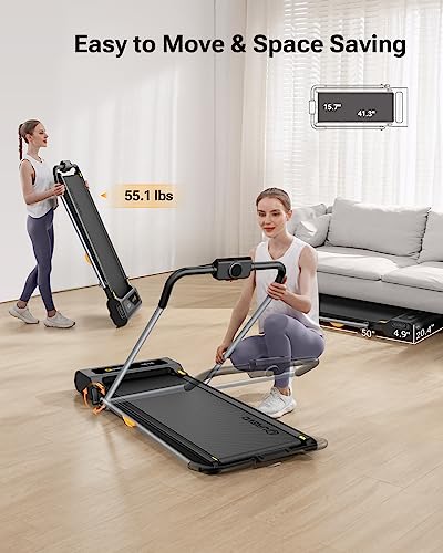 UREVO Foldable Treadmill with Smart Rotary Console, 2 in 1 double Shock Absorbent Walking Pad with 3 HIIT Modes and Remote Control, 1-12 km/h Under desk treadmill for Home/Office