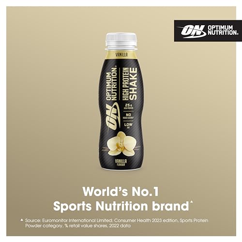Optimum Nutrition High Protein Shake Bottles, Ready To Drink Healthy Snacks, No added sugars, low fat , Post Workout Snack for Men and Women, Vanilla Flavour, 12X330 ml, Packaging may vary