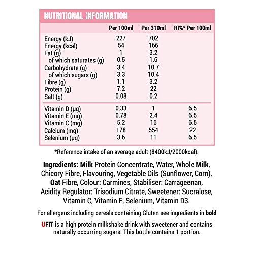 8 x The Protein Drinks Ufit 310ml Strawberry Protein Shake Drink – Pack of 8 Bottles