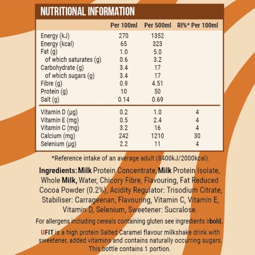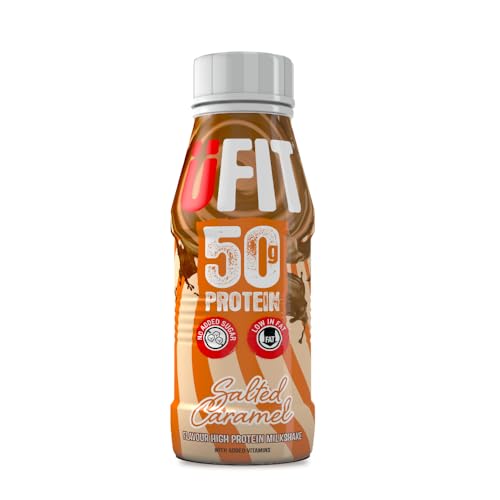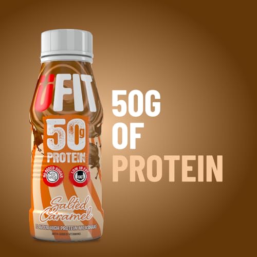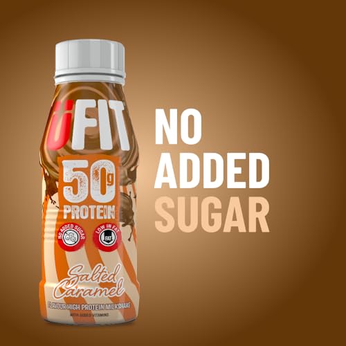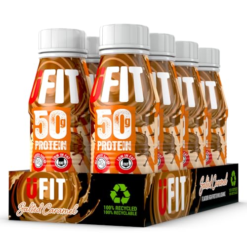 UFIT High 50g Protein Shake, No Added Sugar, Low in Fat, Salted Caramel Flavour Ready to Drink, Pack of 8 x 500 ml (Packaging May Vary)…