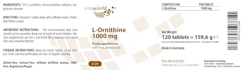3 Pack Vita World L-Ornithine 1000 mg 3 x 120 Tablets Highly Dosed Vegan Only 1 Tablet a Day Made in Germany