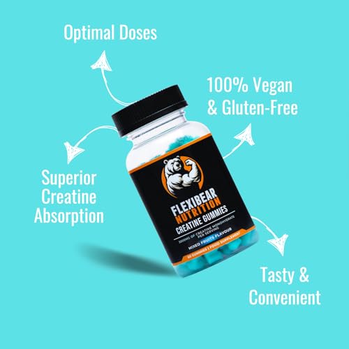 FlexiBear Nutrition 3000mg Creatine Monohydrate Gummies – 60 Gummies (1 Month Supply) – Muscle Growth Supplements – Vegan – Men & Women – Mixed Fruit Flavour