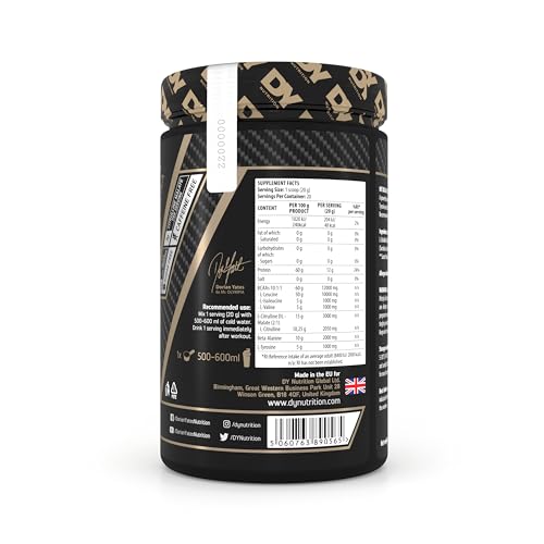 Branched Chain Amino Acids: L-Leucine, L-Isoleucine, L-Valine in a 4:1:1 Ratio, L-Glutamine Monohydrate, Acid (Citric Acid), Sweetener (Sucralose), Flavouring, Emulsifier (Soy Lecithin), Colour (E129)