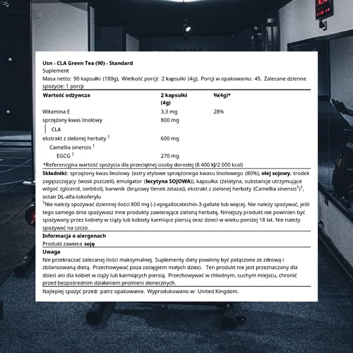 USN CLA Green Tea capsules features a cutting-edge formulation of Conjugated Linoleic Acid, which is designed to help support your weight loss goals when taken as part of a restricted diet. Each serving provides 800mg of CLA, plus Polyphenols, Vitamin E and Green Tea extract, which acts a potent antioxidant. Support the function of a healthy immune system and take as part of a healthy, active lifestyle and balanced diet. The soft gel capsules are easy to swallow: take 2 capsules daily with food, or as your health practitioner advises. • Contains 90 USN CLA Green Tea soft gel tablets Using the highest quality ingredients, scientifically relevant products and independent laboratories for quality testing, USN’s sports performance, weight control and muscle-building supplementation have been the cornerstones of our premium product offerings, alongside wellness products, beverages and bars. Discover the full range of USN meal replacement formulas, whey protein powders and pre workout and post workout supplements to help enhance your performance. Always consult a healthcare professional before taking fitness supplements. Avoid use if pregnant, elderly or under the age of 18. Do not exceed the recommended daily intake. Food supplements should not replace a varied, balanced diet and healthy lifestyle.