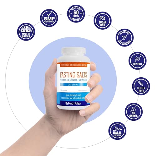 Nutri-Align Fasting Salts Electrolytes, 120 Capsules | Sodium Potassium Magnesium Electrolytes | Pure Fasting Electrolytes | Sugar Free & Filler Free | Made in The UK