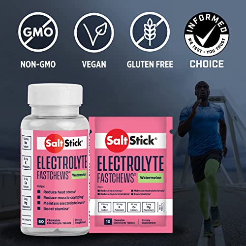 SaltStick FastChews Electrolytes – 60 Chewable Electrolyte Tablets – Salt Tablets for Running, Fast Hydration, Leg Cramps Relief, Sports Recovery – Non-GMO, Vegan, Gluten Free (Watermelon)