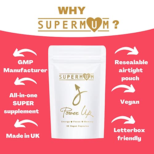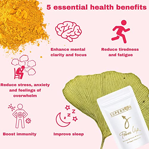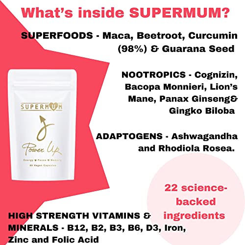 Supermum | Brain Health Supplement | Superfood | Vegan Nootropic for Focus Energy Memory | Panax Ginseng | Complex B Vitamins | Curcumin | Ashwagandha| Brain Fog | Capsules | 30 Servings