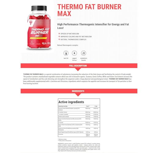 TREC Nutrition Thermo Fat Burner Max 120tab – Boost Metabolism, Natural Thermogenic Complex with Guarana, Green Coffee, White & Green Tea – L-Carnitine & Chromium for Effective Weight Management