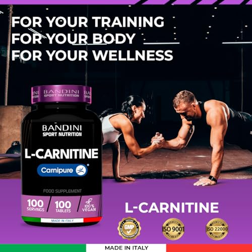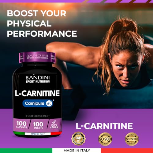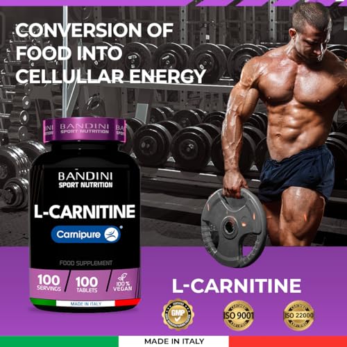 Bandini® L-CARNITINE 1000mg Carnipure® | 100 Vegan Tablets 100 Days | High Strength L Carnitine Tartrate Supplement | Reduces Tiredness & Fatigue | Energy & Metabolism Support | Pre-Workout Formula