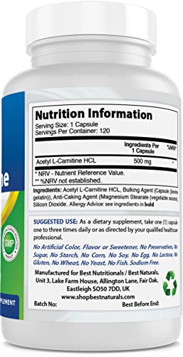 Best Naturals Acetyl L-Carnitine 500 mg 120 Capsules