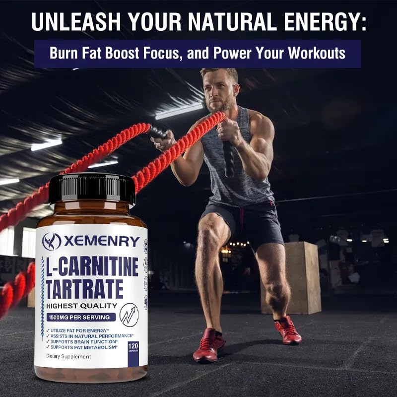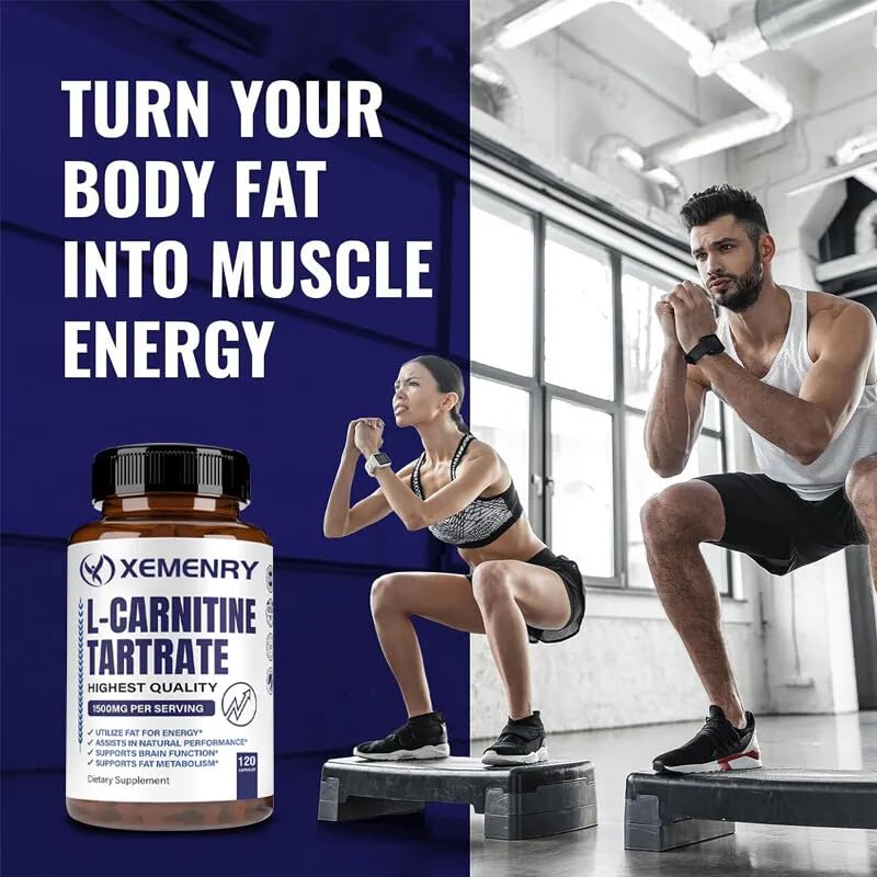L-Carnitine Tartrate 1500mg (120 Capsules) Weight Loss, Fat Burning, Muscle Health, Anti-Fatigue
