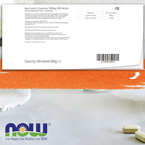 Now Foods, L-Carnitine, 1000mg, 100 Vegan Tablets, Amino Acid, Gluten-Free, SOYA-Free, GMO-Free