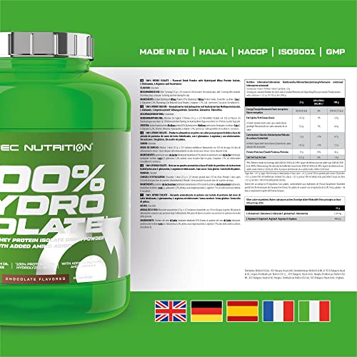 Scitec Nutrition 100% Hydro Isolate – Hydrolyzed Isolate with Glutamine & Arginine – Sugar-Free, Gluten-Free – Post-Workout Recovery, 2000 g, Chocolate