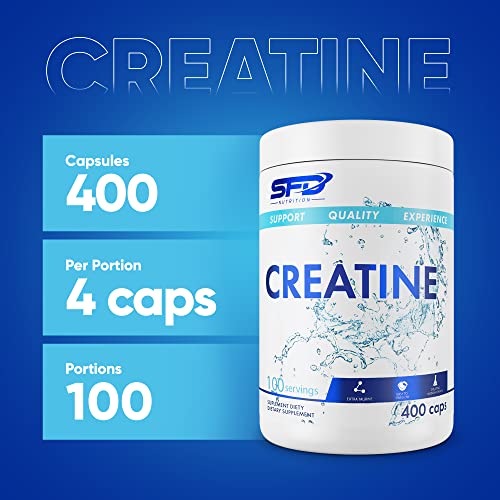 SFD Creatine Monohydrate Caps with Taurine – Pre-Workout Gym Supplements – Performance Boost and Post Workout Muscle Recovery – No Additives – 400 Capsules