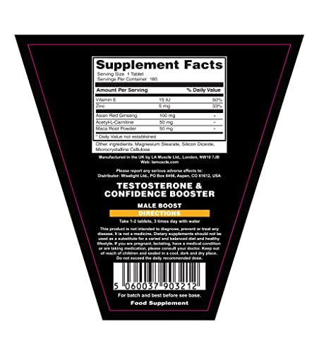 LA Muscle Male Boost | Testo Booster to Get You Strong & Lean | Natural Testosterone Booster | Up to 2 Months Suuply Each Tub | GM Free (180 Tablets (1 x Pack))