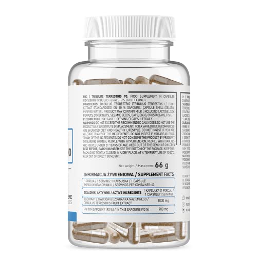 Ostrovit Tribulus Terrestris 90 Package of 1 x 60 Capsules – Testosteron Booster – 90% Saponine