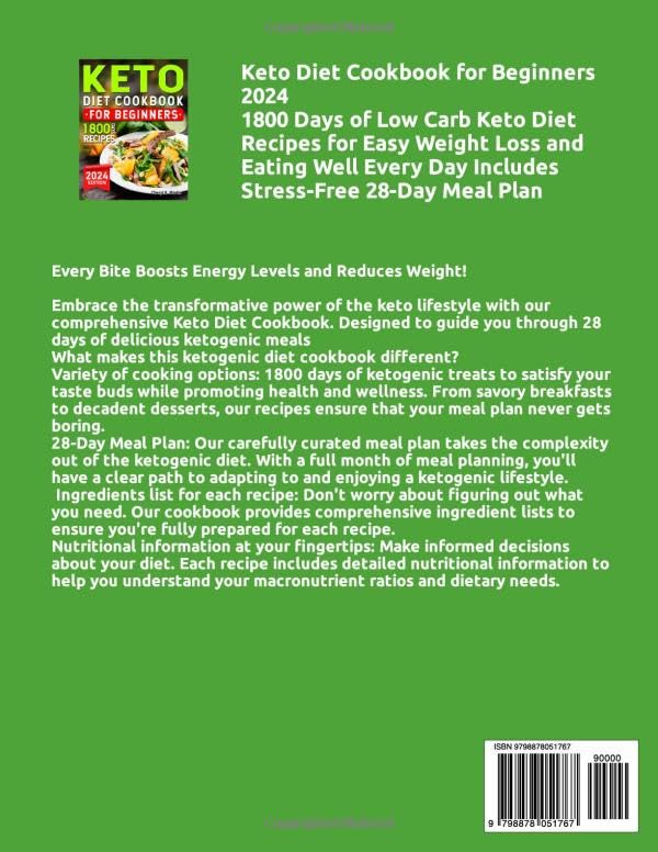 Keto Diet Cookbook for Beginners 2024: 1800 Days of Low Carb Keto Diet Recipes for Easy Weight Loss and Eating Well Every Day Includes Stress-Free 28-Day Meal Plan Paperback – 31 Jan. 2024
