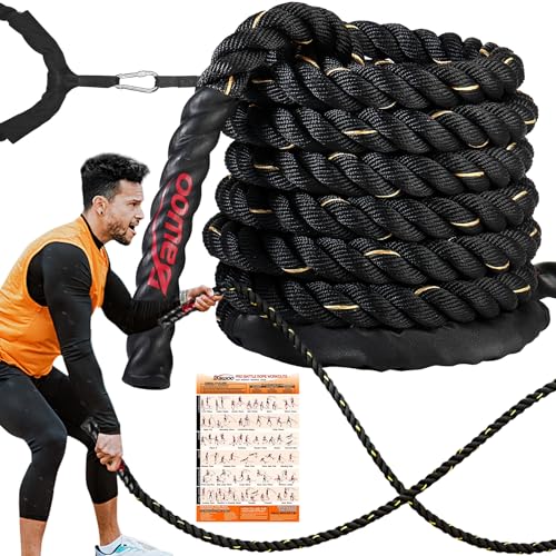 DAWOO Battle Ropes 38mm*9/12/15m with Protective Cover Heavy Exercise Rope for Home, Gyms Fitness, Strength Training, CrossFit and More